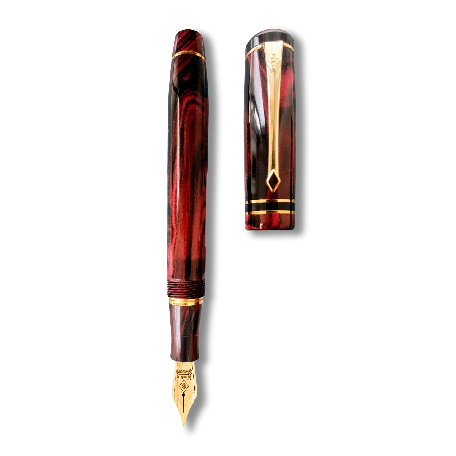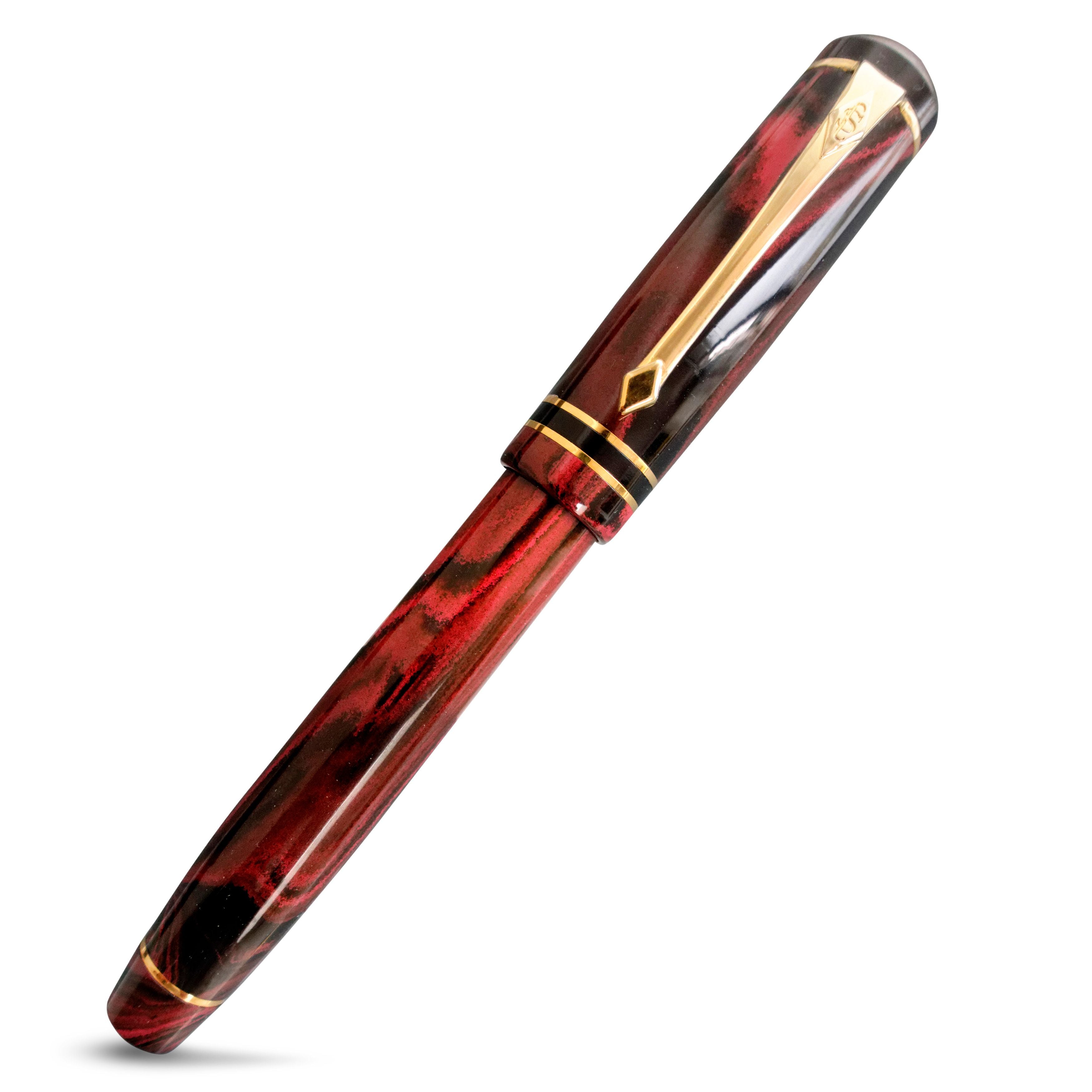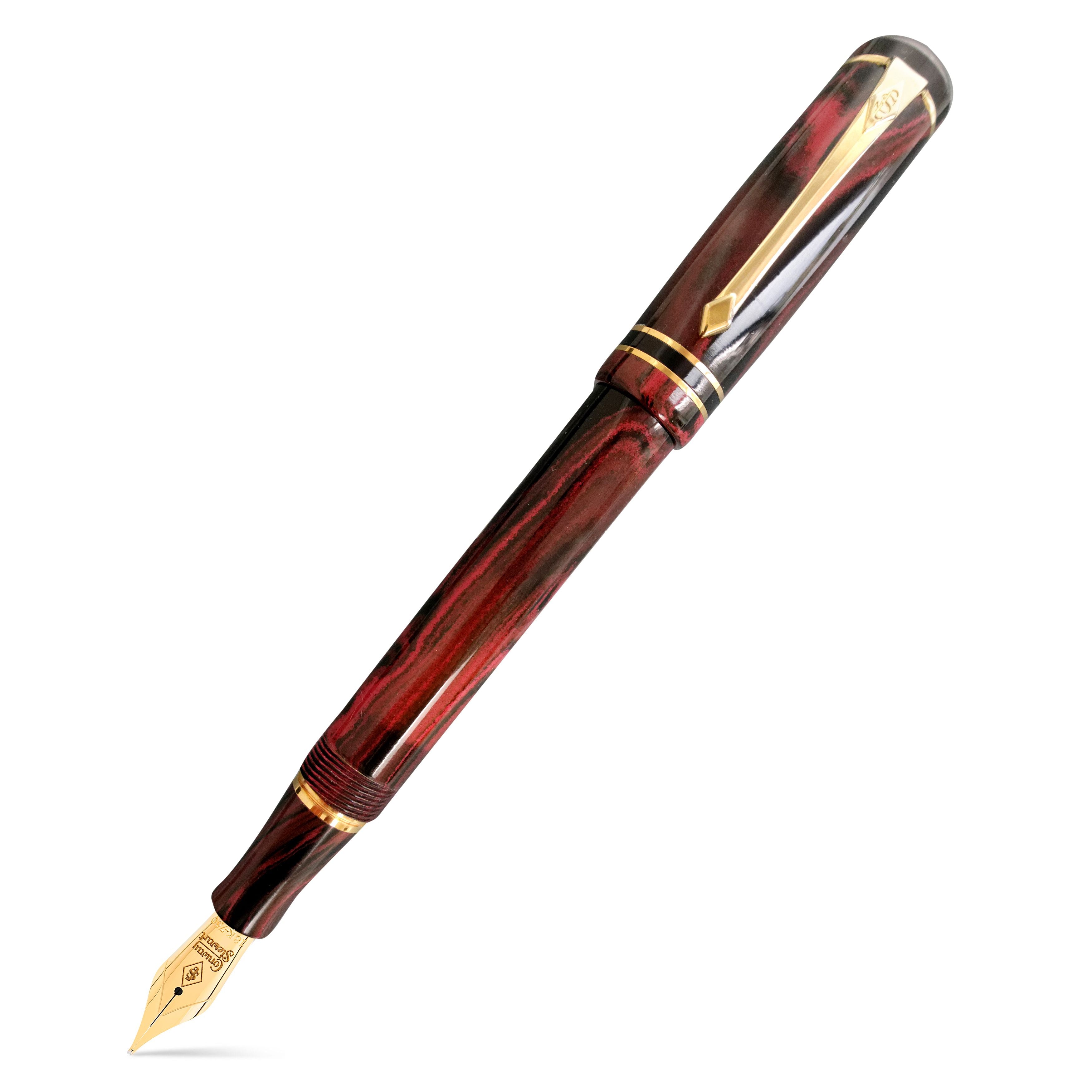 Wir stellen Ihnen den Conway Stewart Wordsworth Cardinal Ripple vor, einen wunderschön gearbeiteten Füllfederhalter aus dem traditionellen Hartgummimaterial Ebonite. Mit nur 16 verfügbaren Stiften ist dieser Stift wirklich einzigartig, mit seiner zufälligen Mischung aus Rot- und Schwarztönen, die jeden Stift unverwechselbar machen. Verziert mit zwei massiven 9-Karat-Goldbändern und einer Flag-Feder aus 18-Karat-Gold, erhältlich in Fein, Mittel oder Breit, ist dieser Stift ein Hauch von Luxus. Benannt nach dem Dichter der englischen Romantik aus dem 19. Jahrhundert, William Wordsworth, wird jeder Stift mit einem Echtheitszertifikat, einer Bedienungsanleitung von Conway Stewart und einem Stift-Reinigungstuch mit Anlaufschutz in einer stilvollen Präsentationsbox aus schwarzem Leder geliefert. Holen Sie sich diesen klassischen und zeitlosen Stift jetzt, bevor er für immer weg ist.