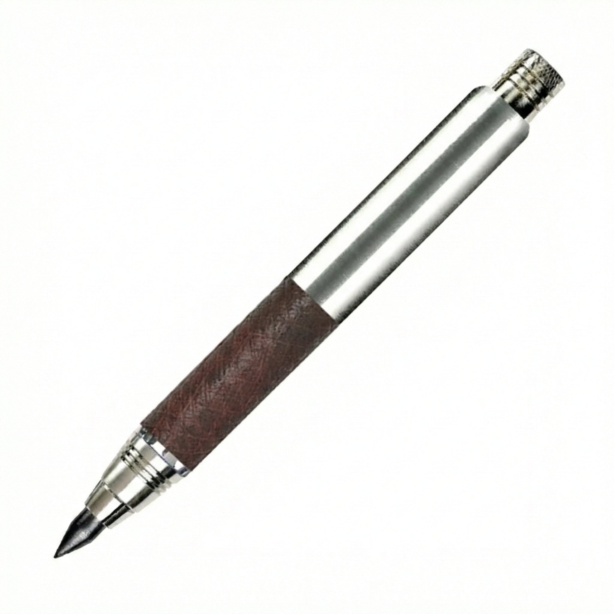 Each 200 Year Old Leather Scribbler is machined from solid brass, polished by hand and nickel plated before being wrapped by hand in this extraordinary leather. The decades spent beneath the English Channel have given the leather a wonderful patina that no modern process could replicate. The 5.6mm clutch mechanism incorporates a lead pointer in the end cap.