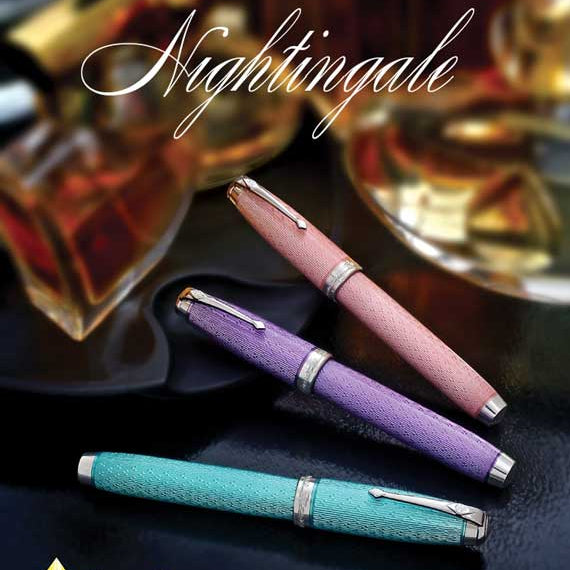 Les stylos Nightingale font partie de la gamme Elegance de Conway Stewart, et ils sont conçus en l'honneur de cette icône des soins infirmiers. Ces petits stylos sont fabriqués avec de l'argent massif poinçonné et ont un motif de tête de renard guilloché très détaillé gravé sur le capuchon et le corps, un design inspiré de Fabergé. Chaque stylo est ensuite habilement recouvert d'émail collé vibrant, ce qui le rend disponible en trois teintes pastel contemporaines : Cherry Blossom, Mauve et Mint Green.