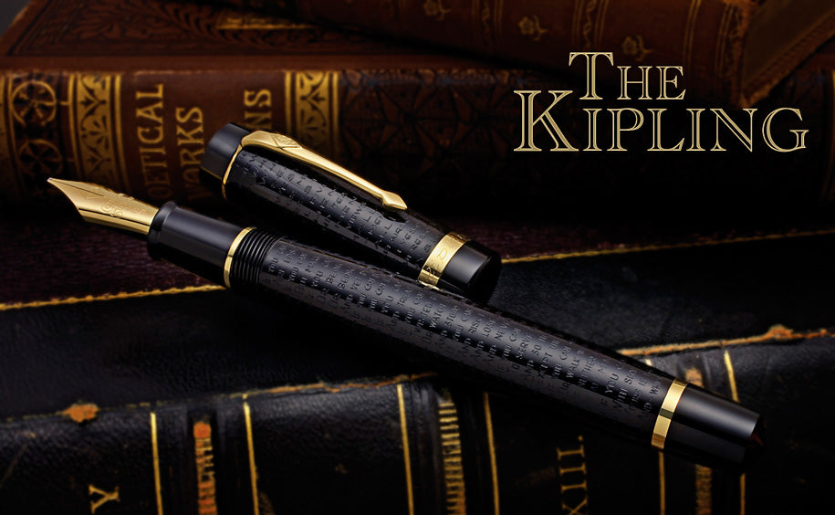 La nouvelle édition spéciale de Conway Stewart s'inspire de l'une des figures littéraires les plus importantes de l'histoire anglaise. À première vue, ce stylo semble avoir un motif complexe gravé sur le capuchon et le corps, mais ce n'est qu'en y regardant de plus près qu'il est possible de lire deux poèmes célèbres de Rudyard Kipling.