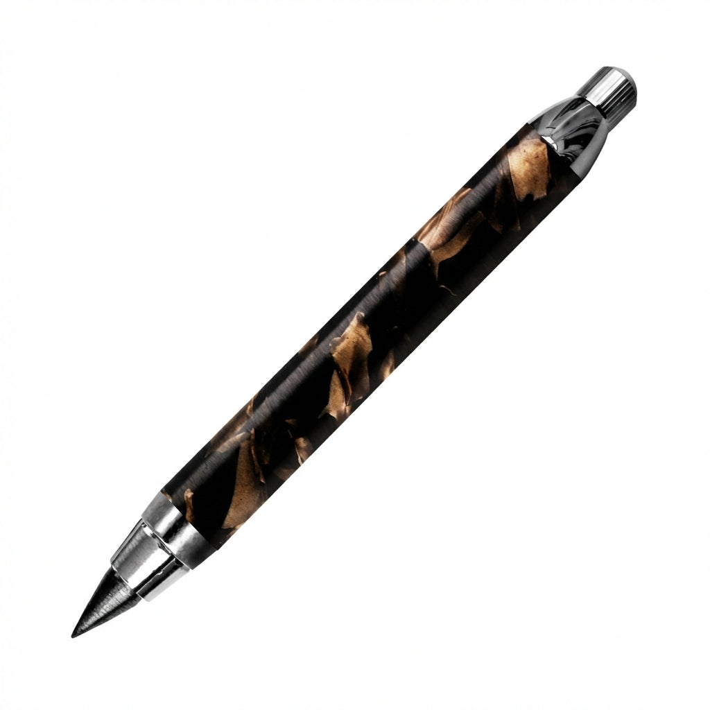 The round barrel sits naturally in the hand and the rich, swirling pattern of the Dartmoor resin gives each pencil its own unique appearance. No two are alike.