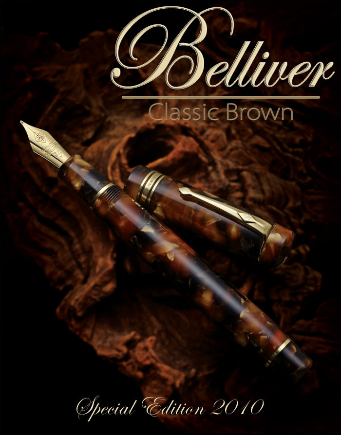 El nuevo modelo Belliver de Conway Stewart es un regreso a las mejores tradiciones de la herencia de CS, arraigadas en la falta de atención al detalle, un tamaño y peso perfectos, así como un diseño atemporal combinado con detalles discretos. Desde el capuchón y el cuerpo de resina cuidadosamente elaborados, cada uno de los cuales brilla en los tonos nacarados de nuestro Marrón Clásico, hasta el rico adorno dorado y la punta de oro macizo de 18 quilates perfectamente ajustada, el Belliver fue creado con un objetivo en mente: hacer que la experiencia de escribir sea perfecta. como sea posible.