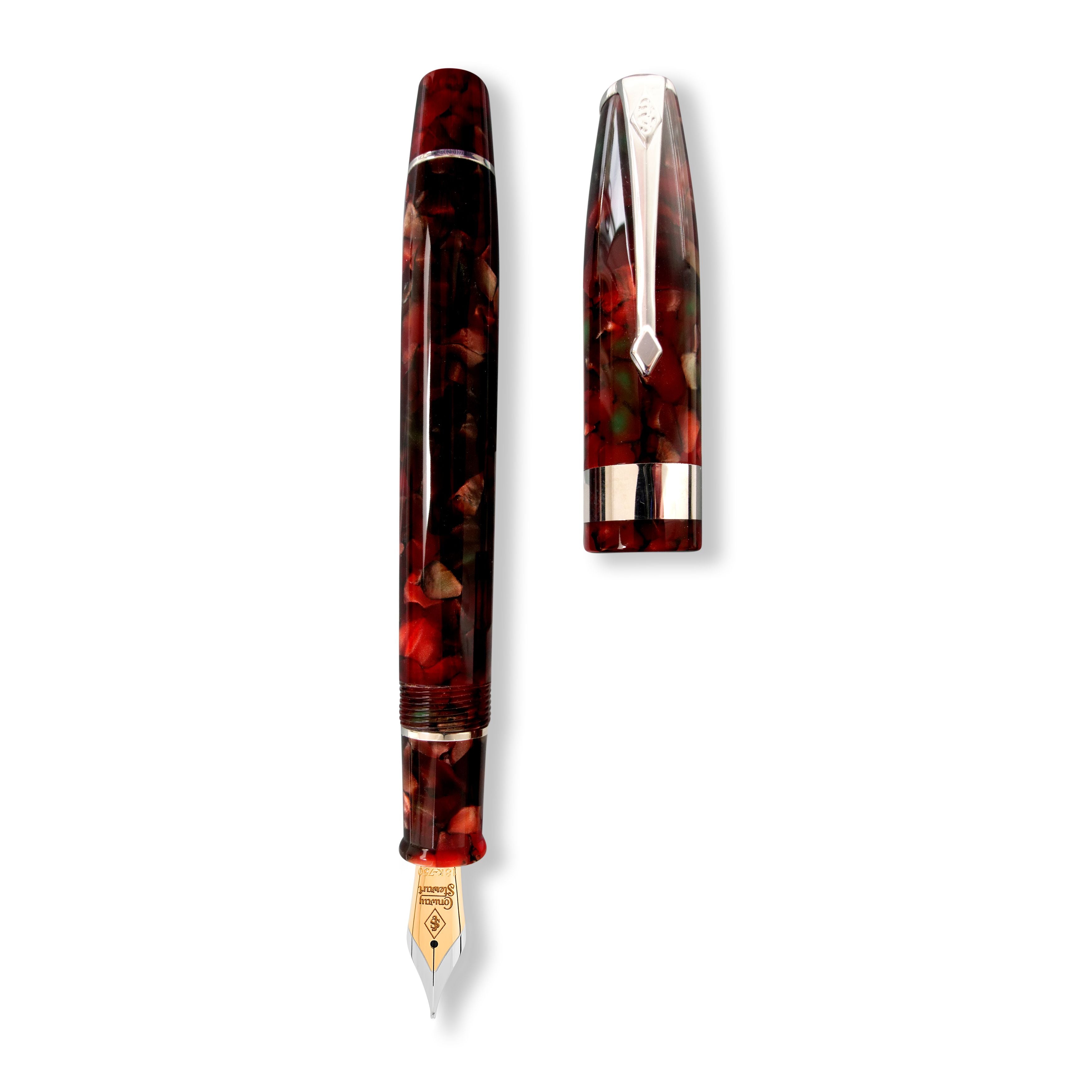 कॉनवे स्टीवर्ट सीरीज़ 100 पॉइंटसेटिया लक्ज़री पेन की दुनिया में एक सच्चा क्लासिक है, जो कि सबसे प्रतिष्ठित और पहचानने योग्य कॉनवे स्टीवर्ट एक्रेलिक से बना है। मुख्य रूप से भूरे और लाल रंग की योजना के साथ हरे रंग के साथ, यह पेन कलेक्टरों के साथ एक पसंदीदा पसंदीदा है। केवल 12 कलमों तक सीमित, यह रिलीज निश्चित रूप से जल्द ही समाप्त हो जाएगी। श्रृंखला 100 संग्रह एक स्थायी रूप से लोकप्रिय रेंज है, जिसमें ट्रिपल बैंडेड कैप, विशिष्ट गोल आकार और कॉनवे स्टीवर्ट क्लिप शामिल हैं जो इसे तुरंत पहचानने योग्य बनाते हैं। 18ct गोल्ड फ्लैग निब के विकल्प के साथ फाउंटेन पेन के रूप में उपलब्ध, यह पेन एक स्टाइलिश काले चमड़े के प्रेजेंटेशन बॉक्स में आता है जो आपके डेस्क के लिए एक शोकेस के रूप में दोगुना हो जाता है।