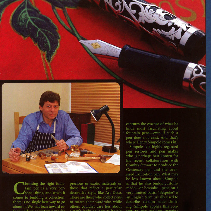 सही फाउंटेन पेन चुनना एक बहुत ही निजी चीज है, और जब संग्रह बनाने की बात आती है, तो इसके बारे में जाने का कोई सबसे अच्छा तरीका नहीं है। उदाहरण के लिए, हम या तो आधुनिक या पुरानी कलमों की ओर झुक सकते हैं, या ऐतिहासिक नोटों या असामान्य विशेषताओं वाले कलमों पर ध्यान केंद्रित कर सकते हैं। कुछ लोग कीमती या विदेशी सामग्रियों से बने पेन या आर्ट डेको जैसे किसी विशेष सजावटी शैली को दर्शाते हैं। ऐसे लोग हैं जो अपनी अलमारी से मेल खाने के लिए पेन इकट्ठा करते हैं, जबकि अन्य लोग पेन के लुक की कम परवाह नहीं कर सकते हैं जब तक कि उसकी निब पूर्णता के उनके मानदंडों को पूरा करती है। चाहे जो भी झुकाव हो, एक सच्चा संग्राहक हमेशा उस एक पेन की तलाश में रहता है जो फाउंटेन पेन के बारे में सबसे आकर्षक चीज के सार को पकड़ लेता है - भले ही ऐसा पेन मौजूद न हो। और यहीं पर हेनरी सिम्पोल आता है।