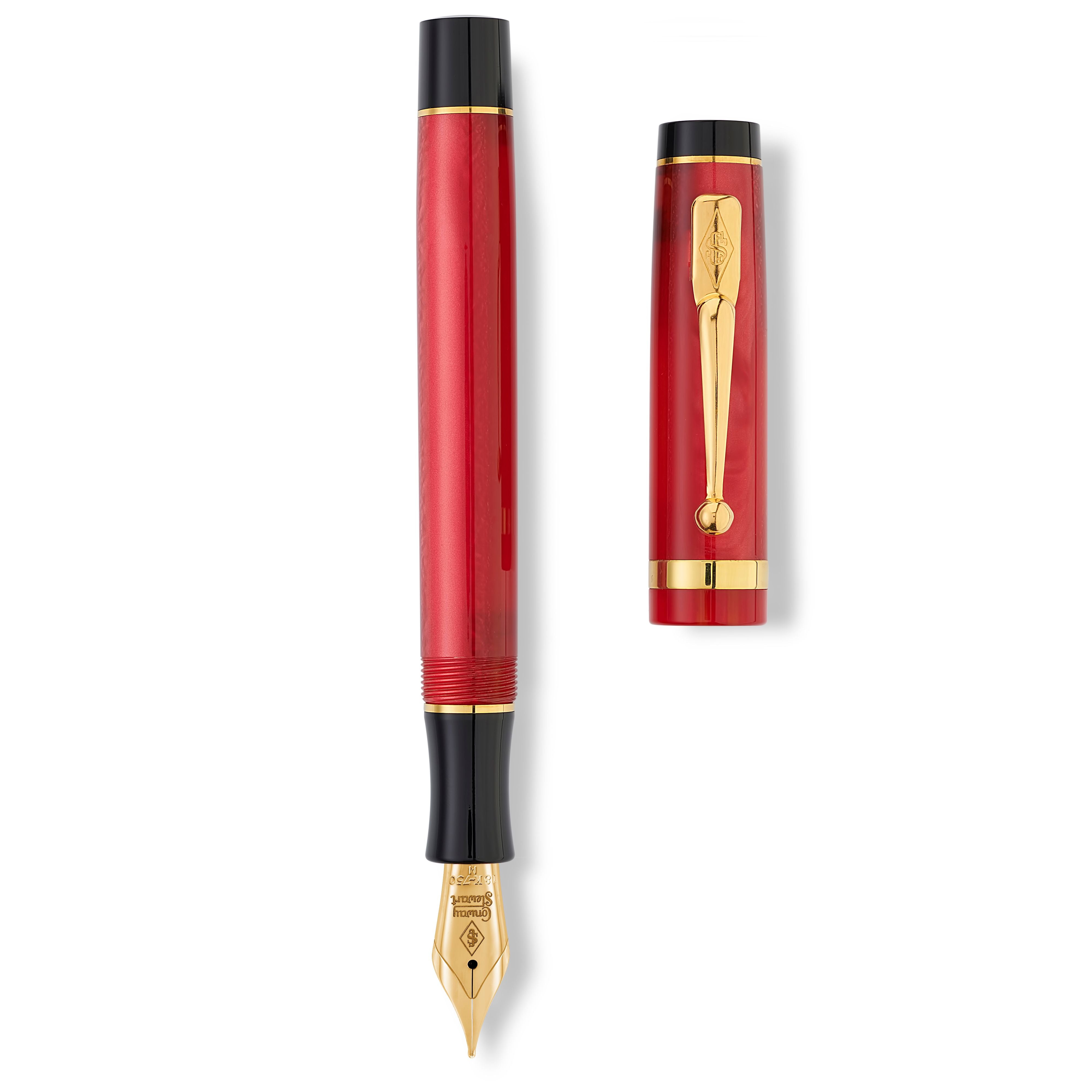 コンウェイ・スチュワートの限定版の名作で、目を奪われること間違いなしのデュロ ガーネット レッドをご紹介します。ガーネットレッドのペンの真珠光沢のあるアクリルは光の中で輝き、9ct ゴールドのトリムが完璧に引き立てます。アイコニックなコンウェイ スチュワート クリップとブラケット デザインにより、このペンは不朽の名作となり、新しいシングル トーンの 18 ct ゴールド ペン先により、滑らかで正確な書き心地が保証されます。世界中で80本しか入手できないペンで、これは真に独占的な作品です。各ペンは、真正性証明書、ユーザーガイド、変色防止研磨クロス付きの豪華なブラックレザーレットのプレゼンテーションボックスに入っています。今年のクリスマスの贈り物や、何年も大切に保管するのに最適です。